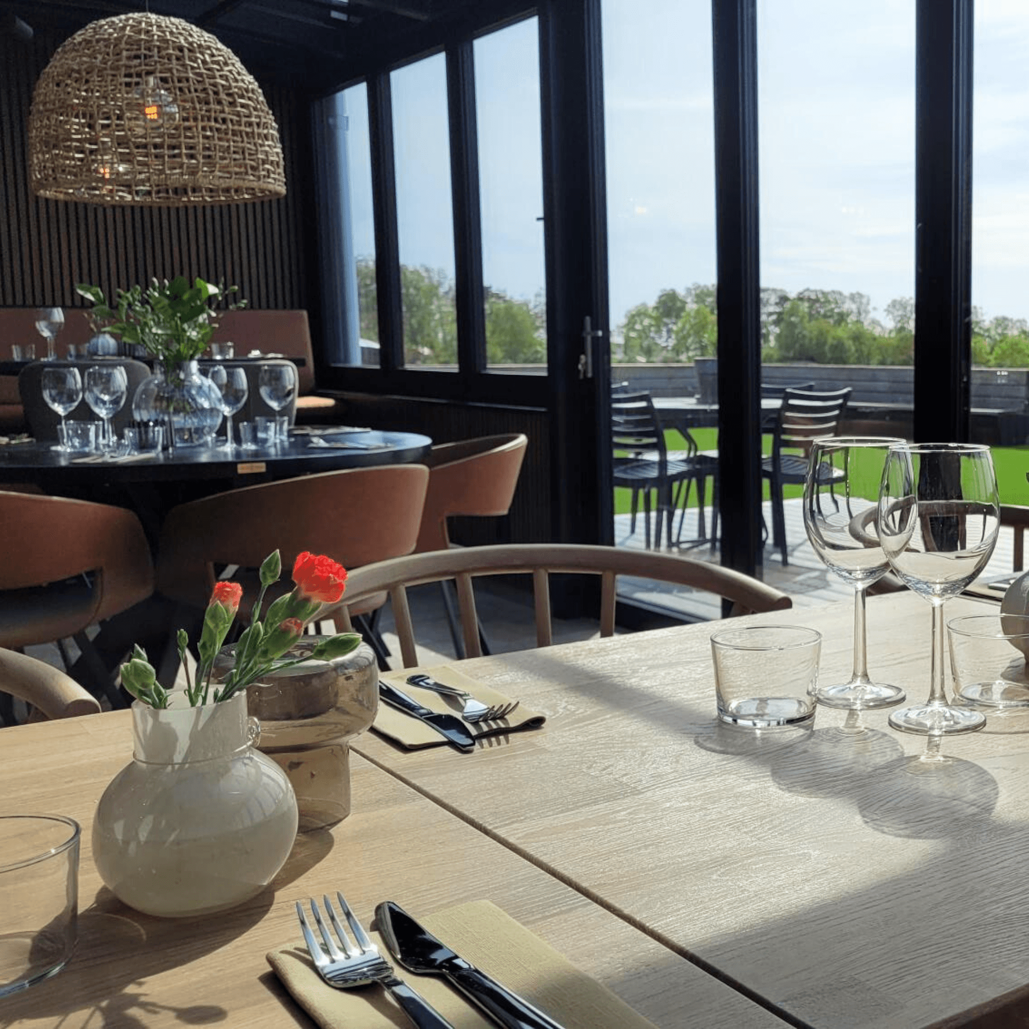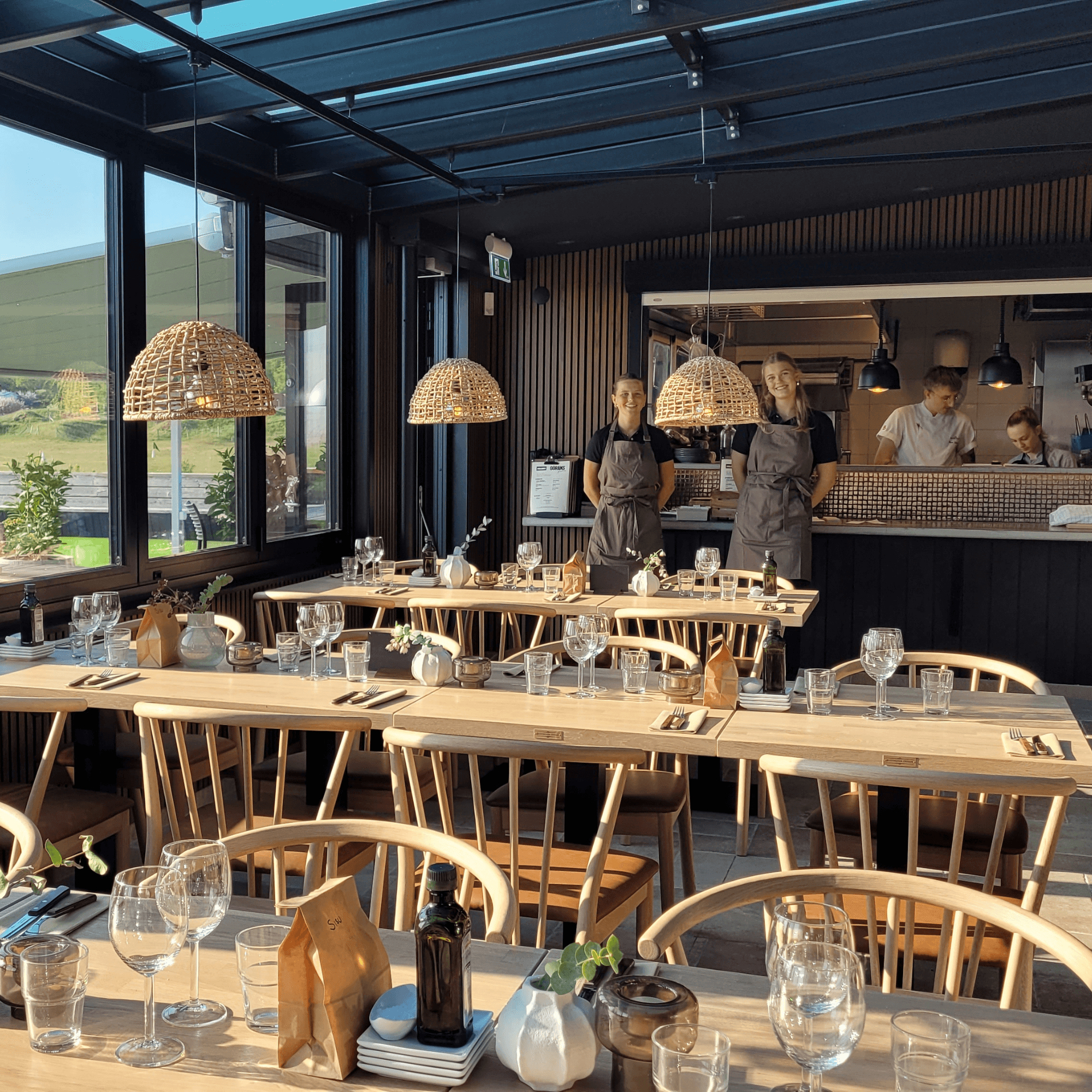 Görans Bistro i Halmstad Golfarena ligger fint beläget längs kusten i Halmstad. Restaurangen är inredd med flertalet matbord från oss på Rustikunik Design. På plats finns även kulörprover i våra olika träslag att kika på.