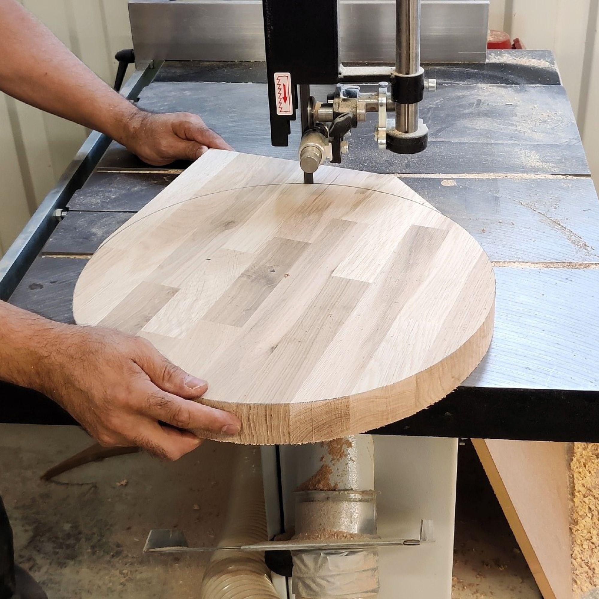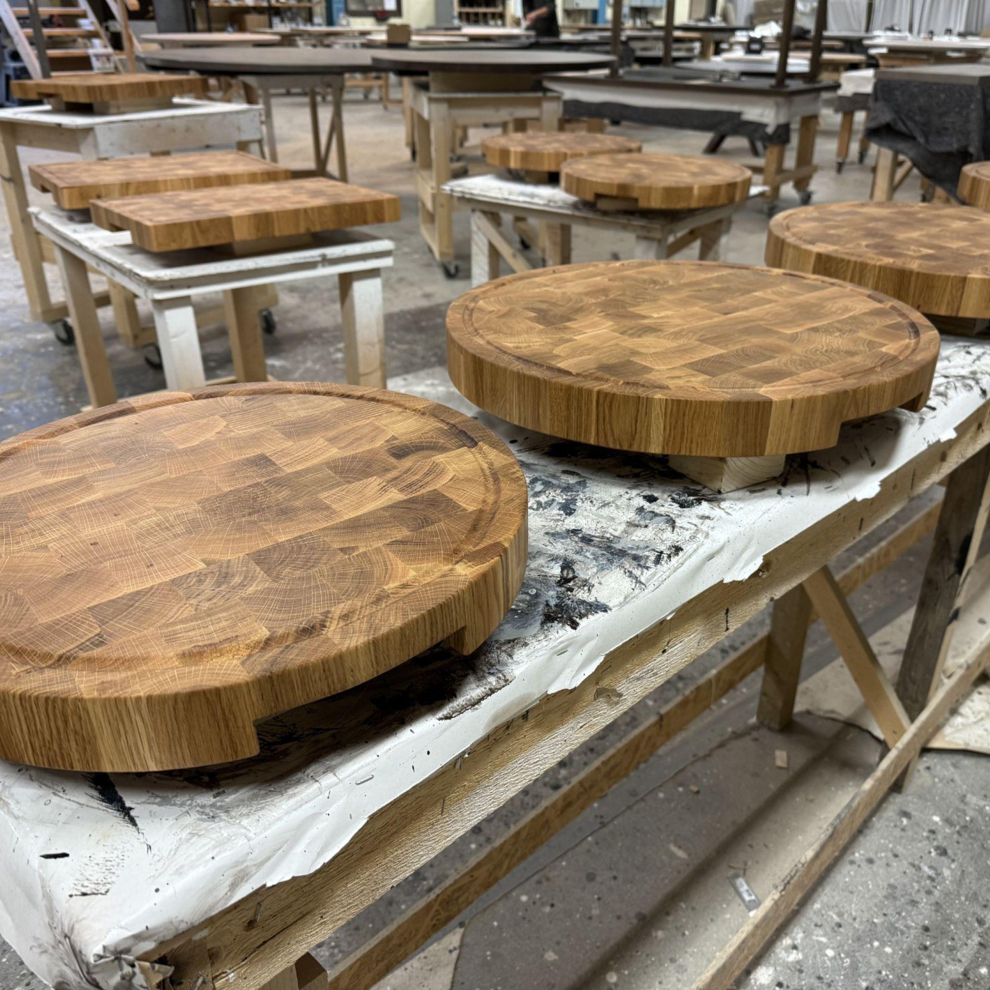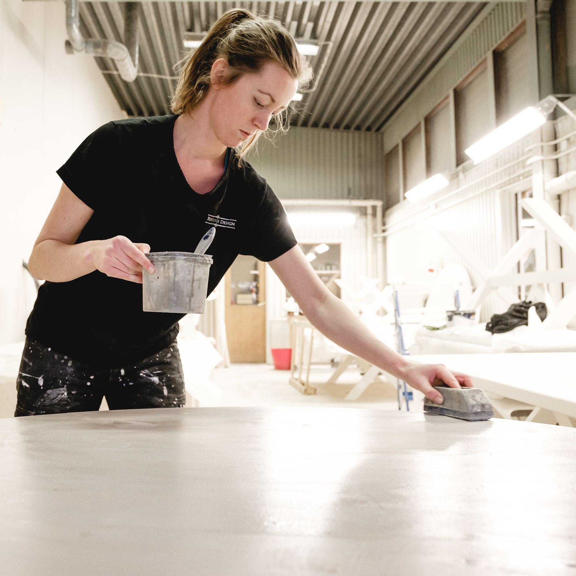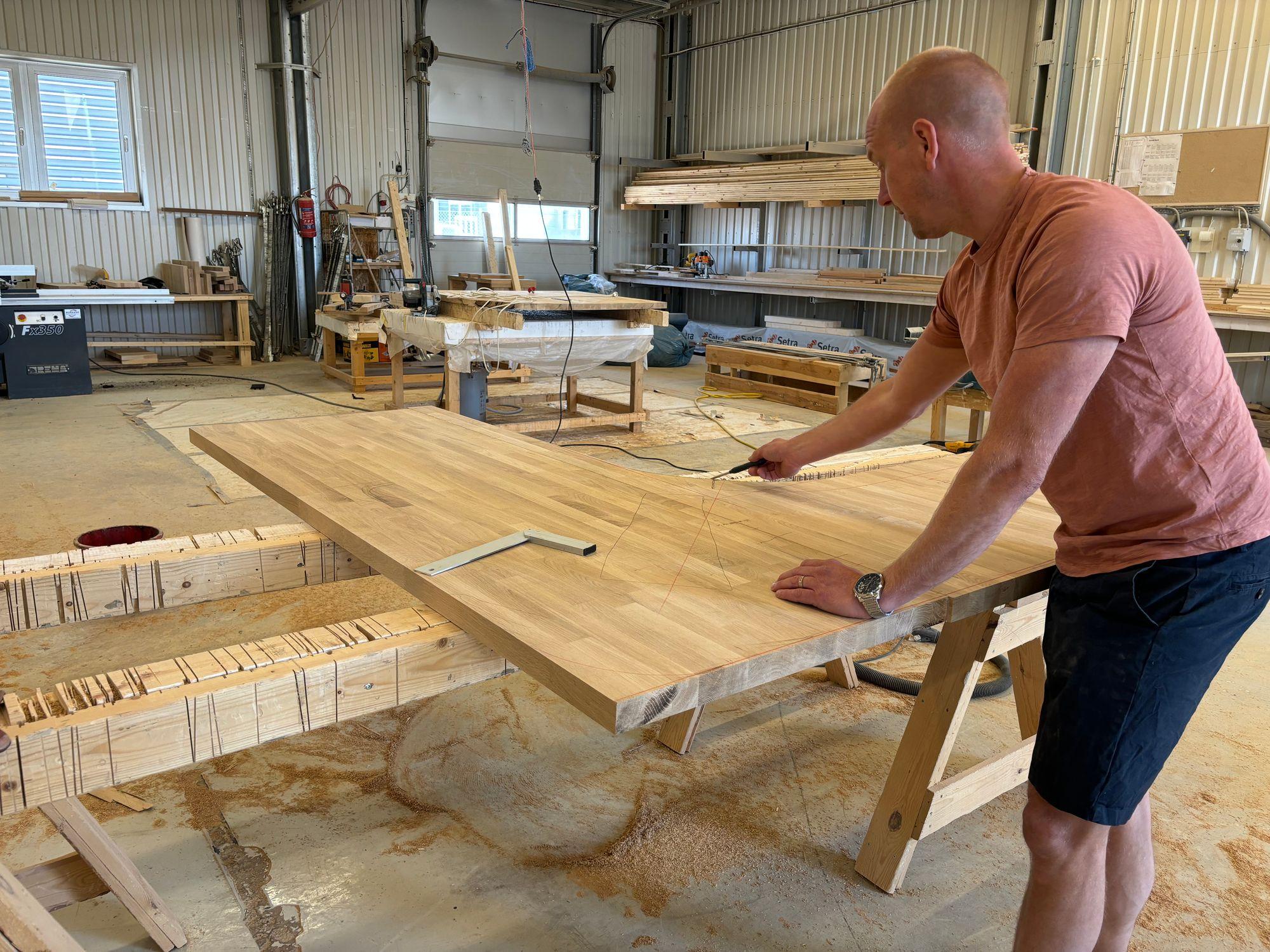 På ena sidan av byggnaden förs materialet in där det sågas, limmas och slipas. I nästa del av huset behandlas delarna med bets eller färg och lackas för att sedan monteras till möbler under ett och samma tak. I samma byggnad har vi ett showroom för den som är nyfiken. Här får du komma och titta på möbler med olika mått, träslag och kulörer. Vi bjuder gärna in till en rundtur i snickeriet också, ofta finns det kundordrar som står klara för leverans och kan inspirera. Eller så kan man kika in när den beställda möbeln tillverkas och se processen växa fram.
